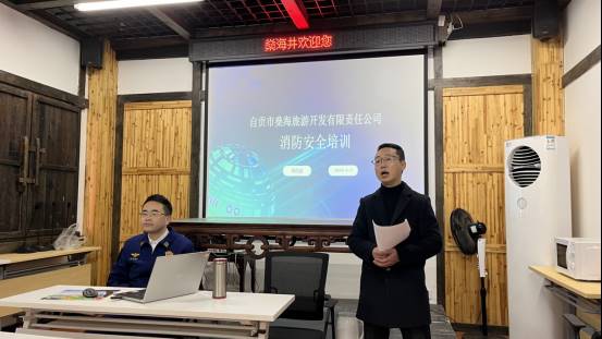 为强化消防安全工作,增强员工消防安全意识和应急处置能力。结合冬春季节干燥多风、用电集中的气候特点,重点围绕冬季消防安全核心要点开展系统培训与实战演练,提高公司内部消防安全体系,提升全员火灾报警、初期扑救的意识与能力。公司于2026年1月8日组织全员在燊海井景区教室开展冬季消防安全培训演练活动。